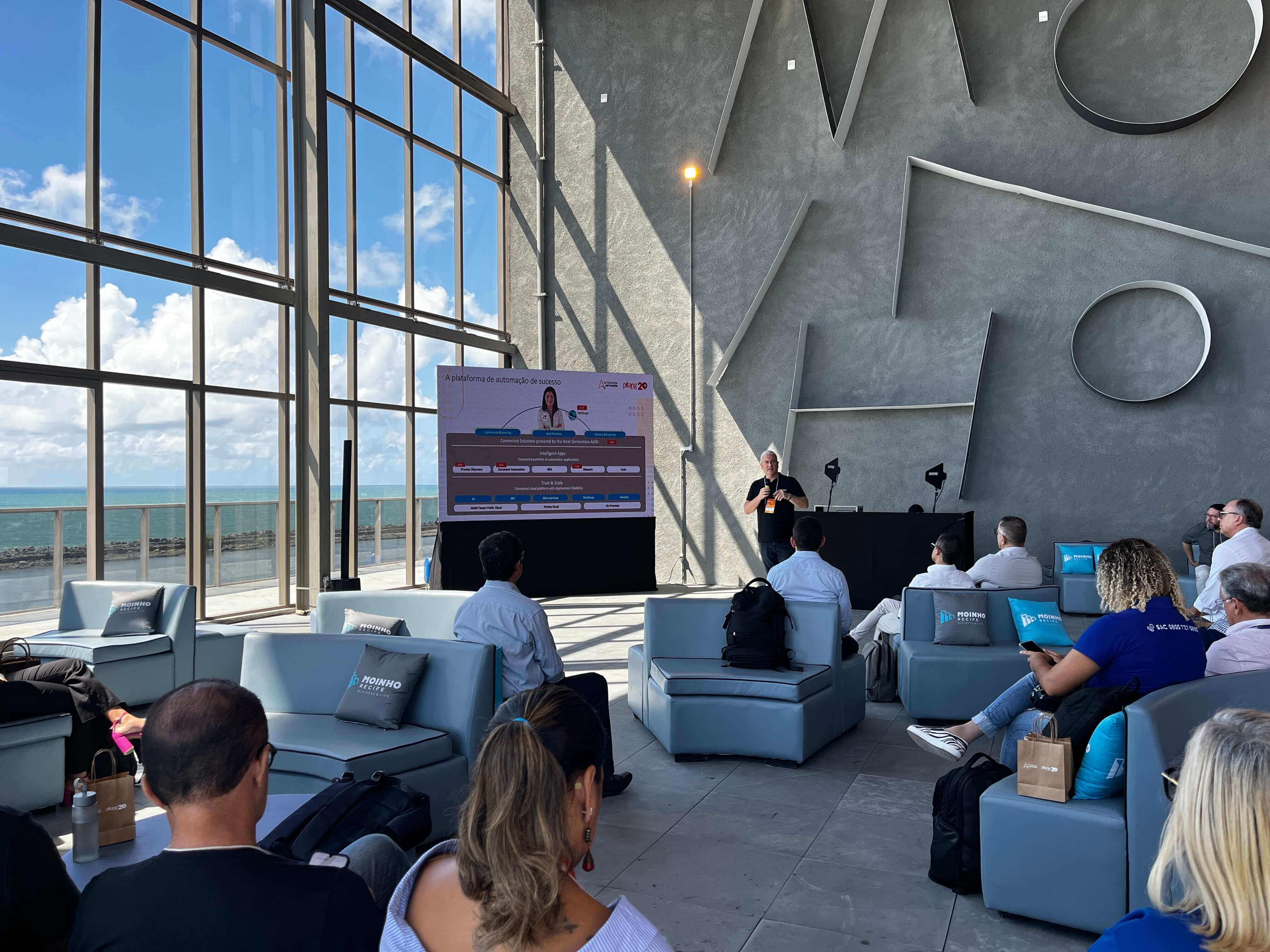 Além das experiências dos clientes, o evento contou com a participação de Carlos Gomes, líder do Pitang Labs e Gerente de Inovação da Pitang, que destacou as oportunidades de trabalho combinando automação e inteligência artificial, e reforçou a importância de investir nessa área em constante crescimento.